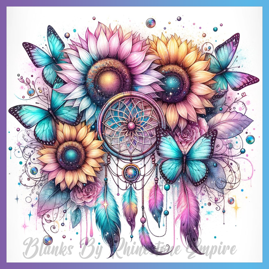 Theme: Dreamcatcher with flowers, butterflies, colorful, bohemian.