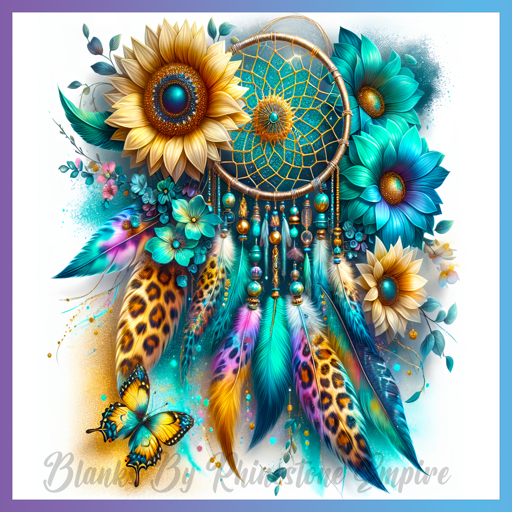 Theme: Dreamcatcher with flowers, feathers, butterfly, colorful.