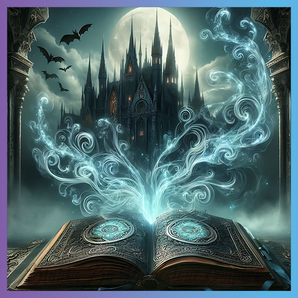 Theme: Book with castle, moon, bats, magic.