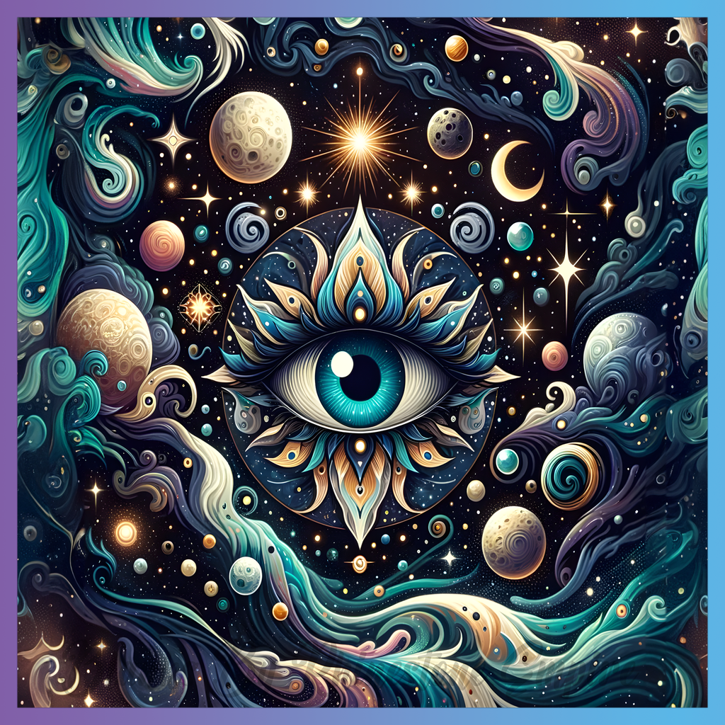 Theme: Eye with cosmic, galaxy, planets, stars.