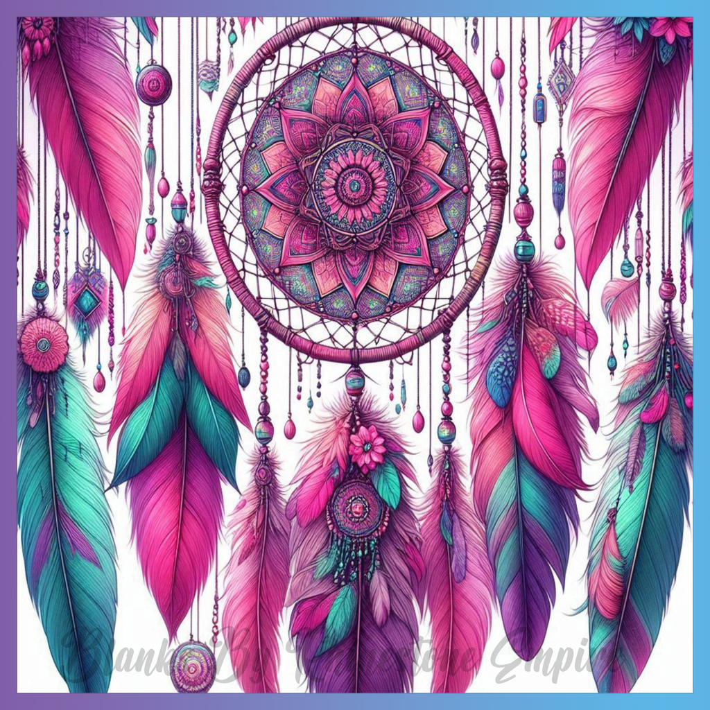 Theme: Dreamcatcher with feathers, mandala, colorful, bohemian.