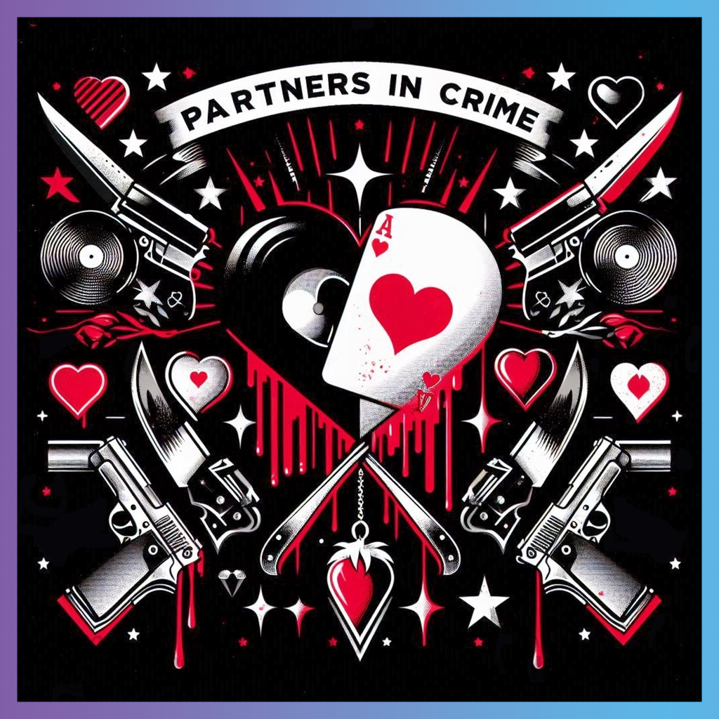 Theme: Heart with guns, knives, stars, blood.