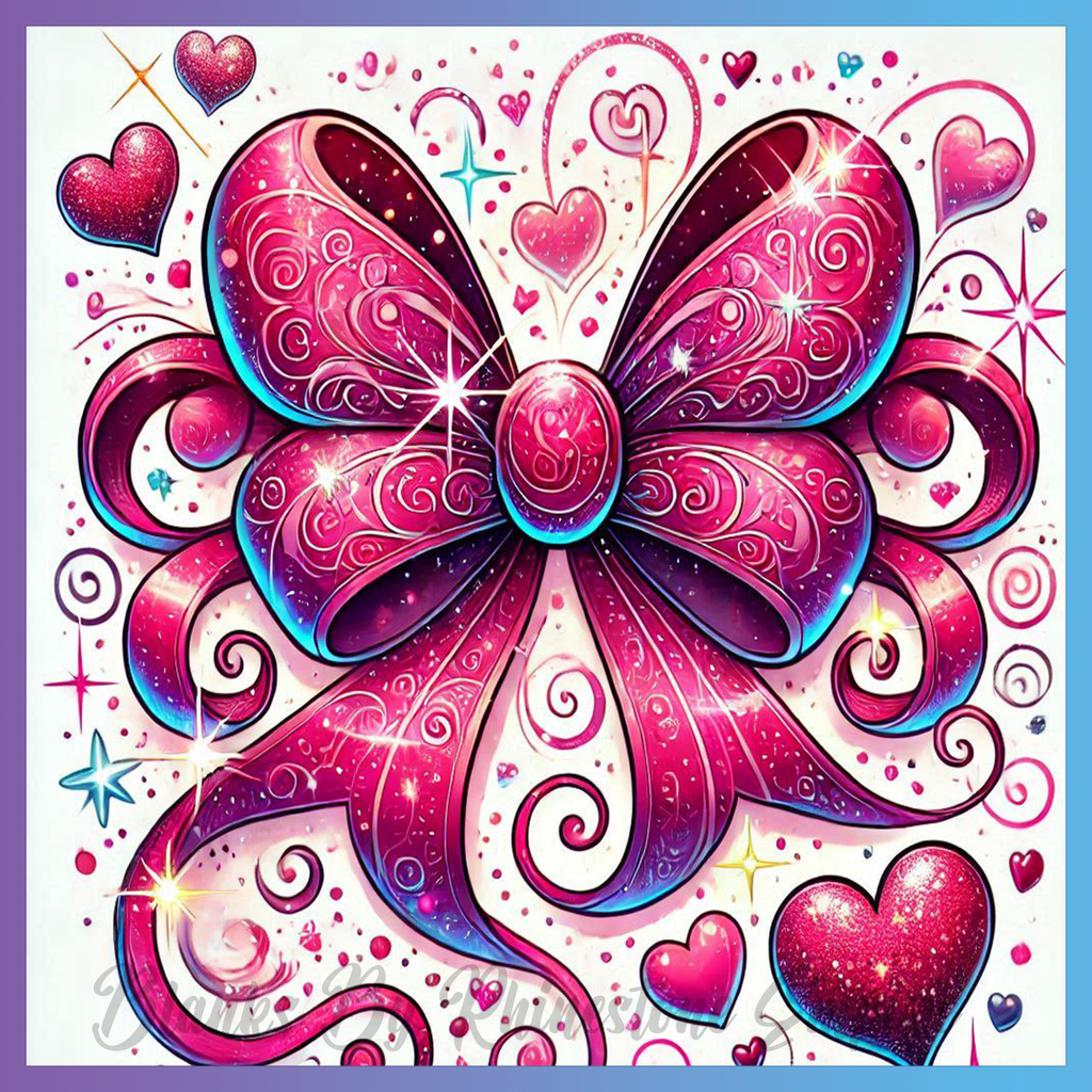 Theme: Bow with pink, hearts, swirls, sparkles.