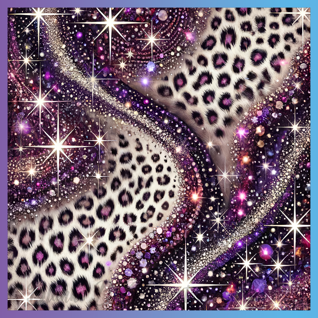 Theme: Leopard with sparkles, pattern, purple, glitter.