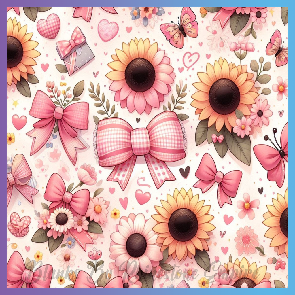 Theme: Bow with flowers, hearts, butterflies, pink.