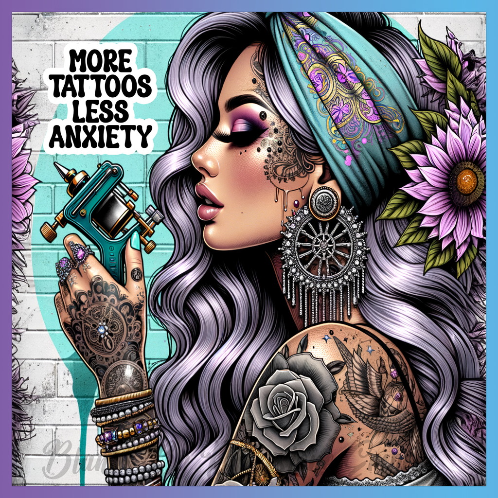 Theme: Girl with tattoo, flowers, hair, piercings.
