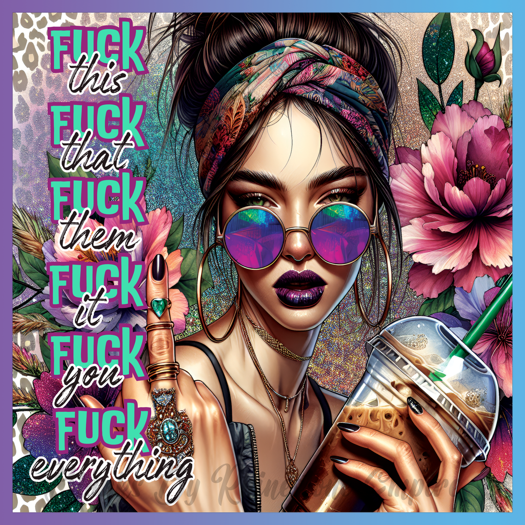 Theme: Girl with sunglasses, coffee, flowers, headband.