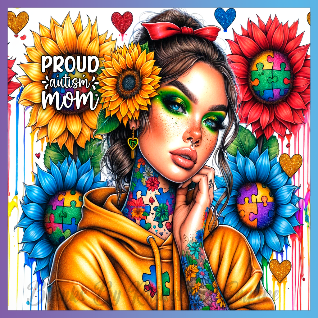 Theme: Girl with tattoo, sunflowers, colorful, puzzle.