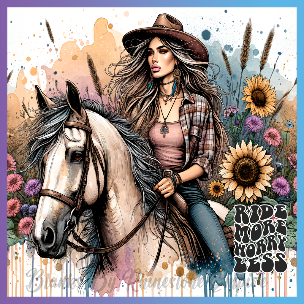 Theme: Girl with horse, cowboy, flowers, sunflowers.
