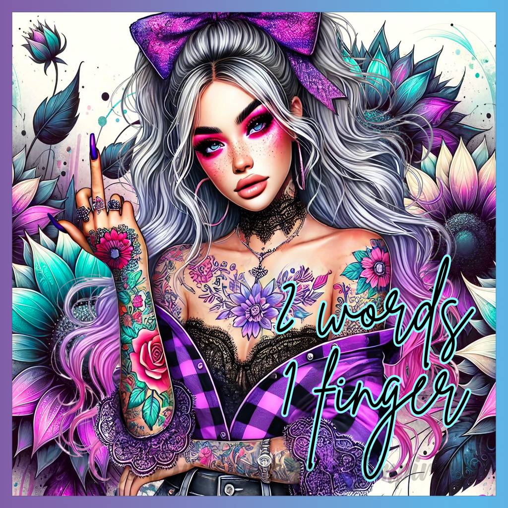 Theme: Girl with tattoo, flowers, hair, makeup.
