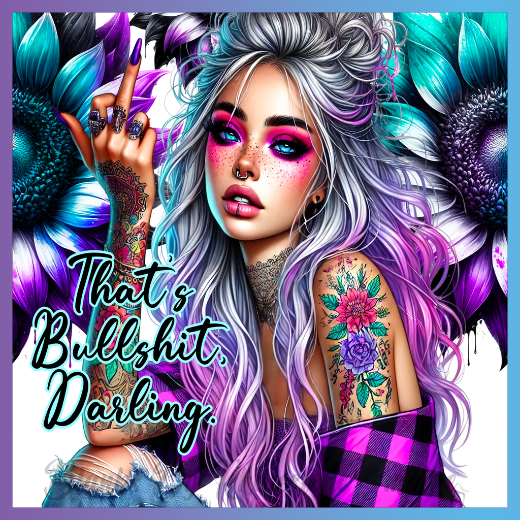 Theme: Girl with tattoo, flowers, colorful, hair.