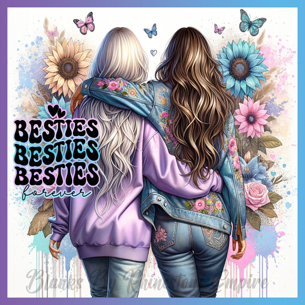 Theme: Girl with friends, flowers, butterflies, colorful.