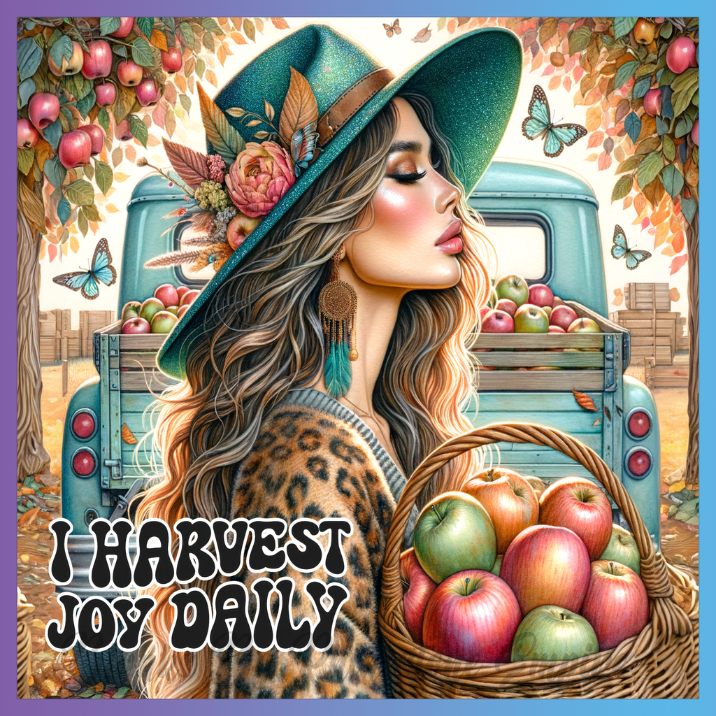 Theme: Girl with hat, leopard print, apples, truck.