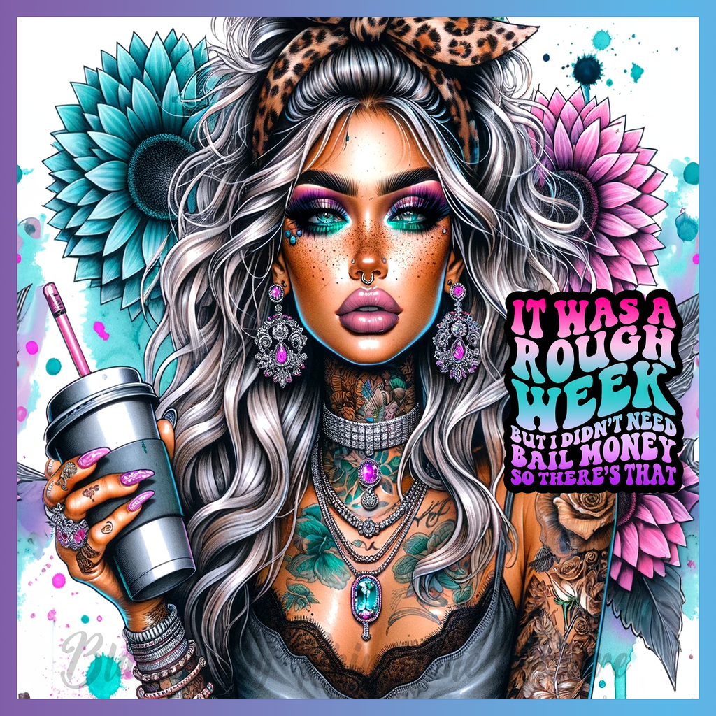 Theme: Girl with tattoo, colorful, flowers, jewelry.