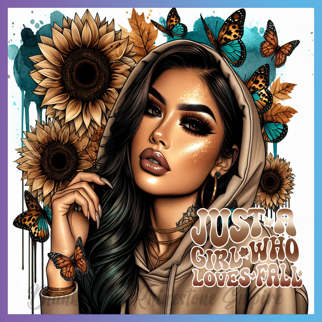 Theme: Girl with sunflowers, butterflies, autumn, hoodie.