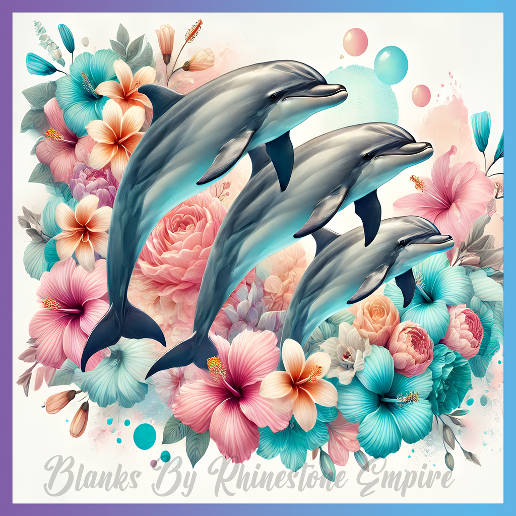 Theme: Dolphin with flowers, ocean, colorful, tropical.