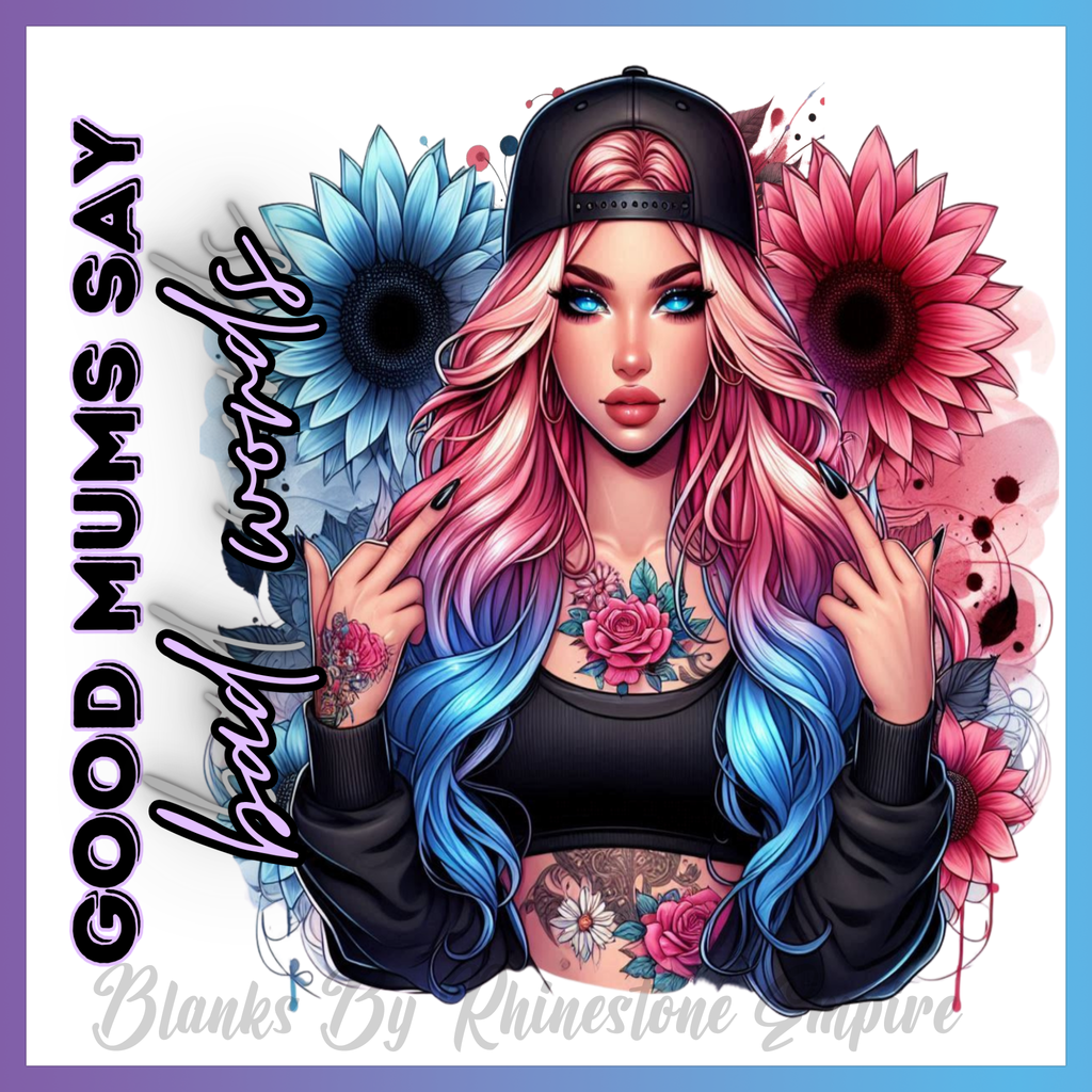 Theme: Girl with tattoo, flowers, colorful hair, urban style.