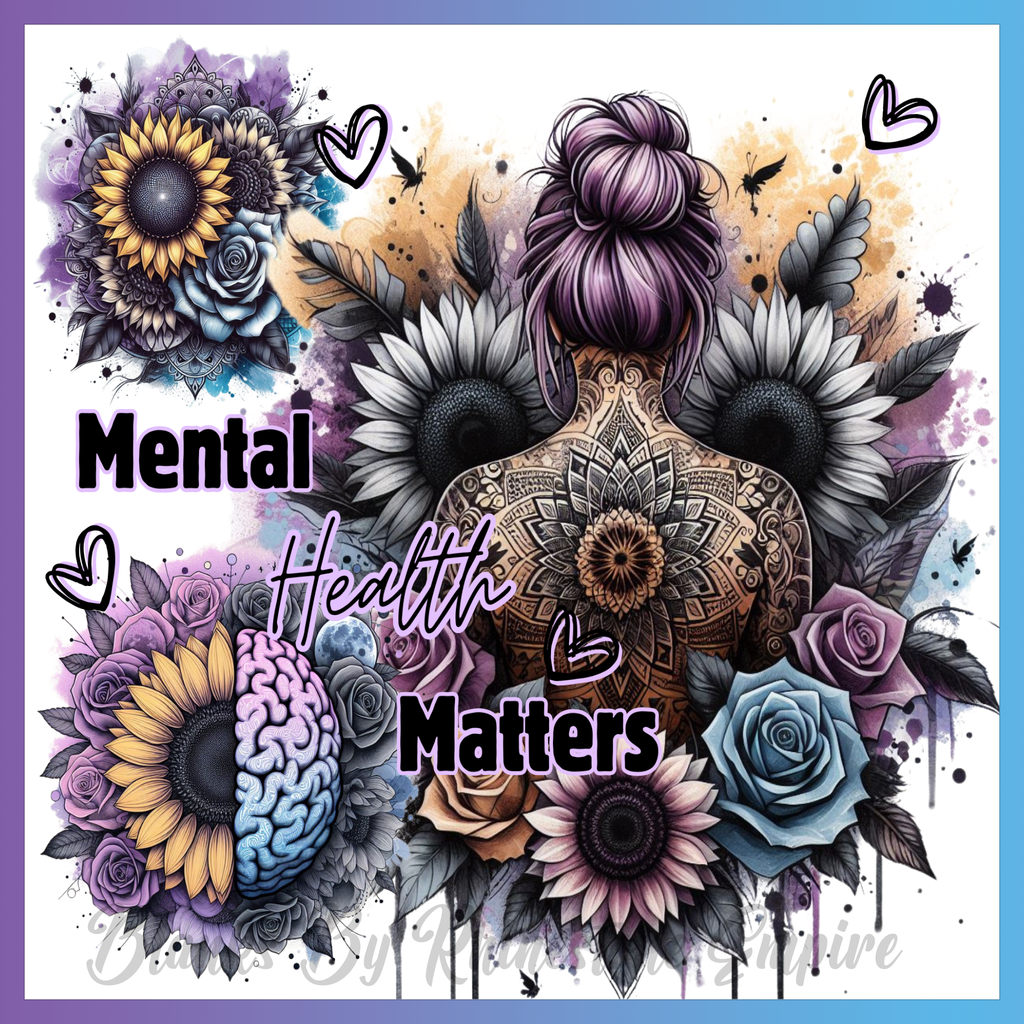 Theme: Girl with tattoo, flowers, mental health, brain.
