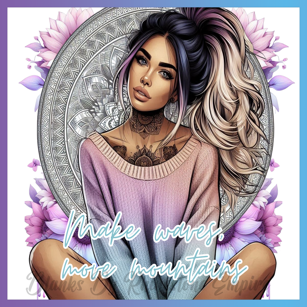 Theme: Girl with tattoo, flowers, mandala, portrait.