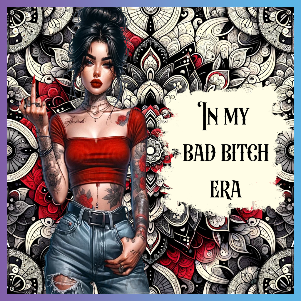 Theme: Girl with tattoo, red, flowers, background.