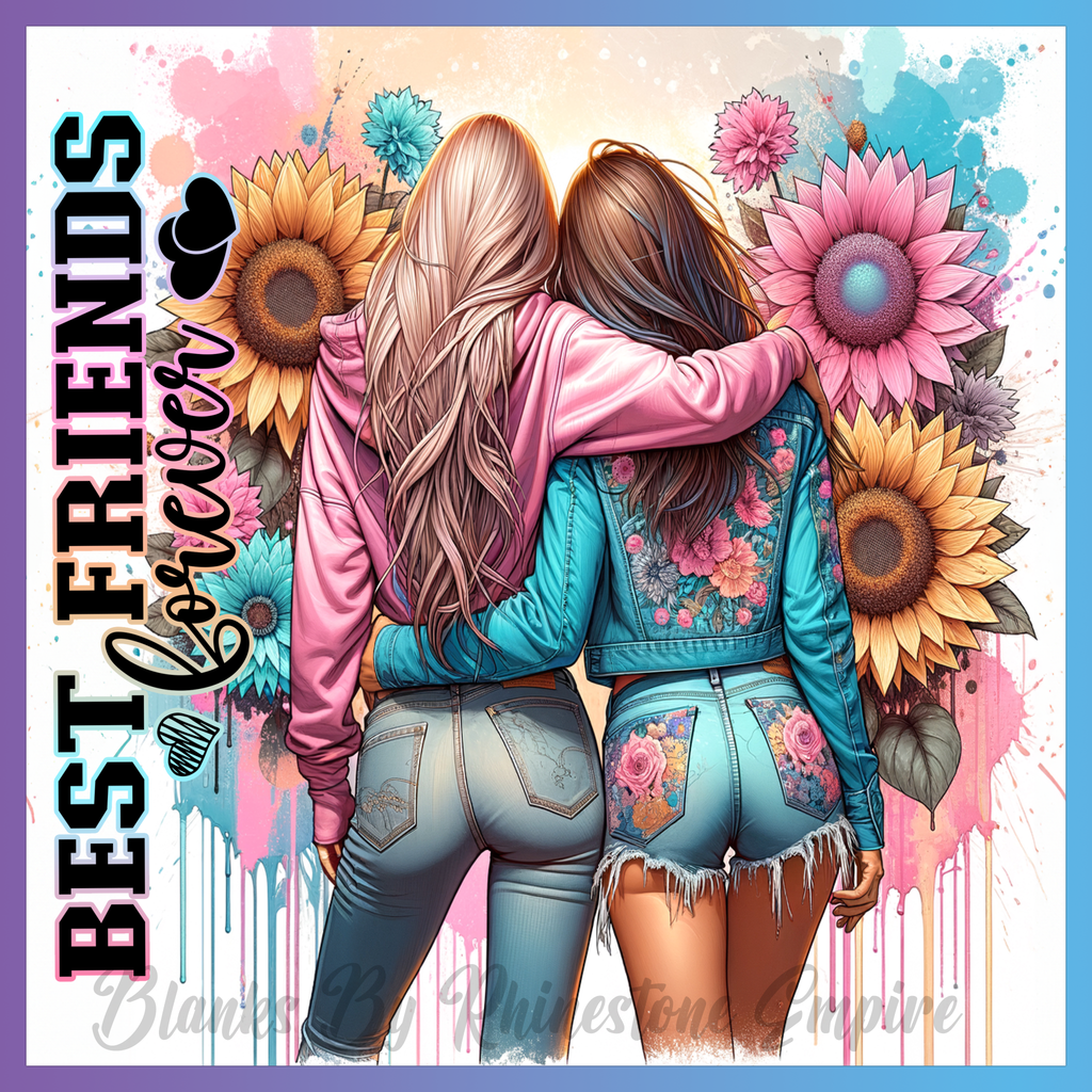Theme: Friends with back, flowers, colorful, jeans.