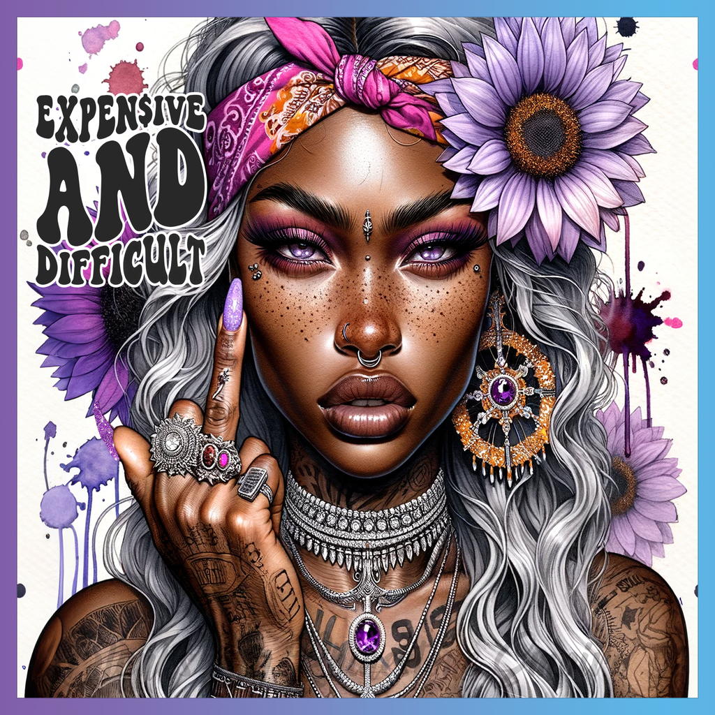 Theme: Girl with tattoo, flowers, jewelry, headband.