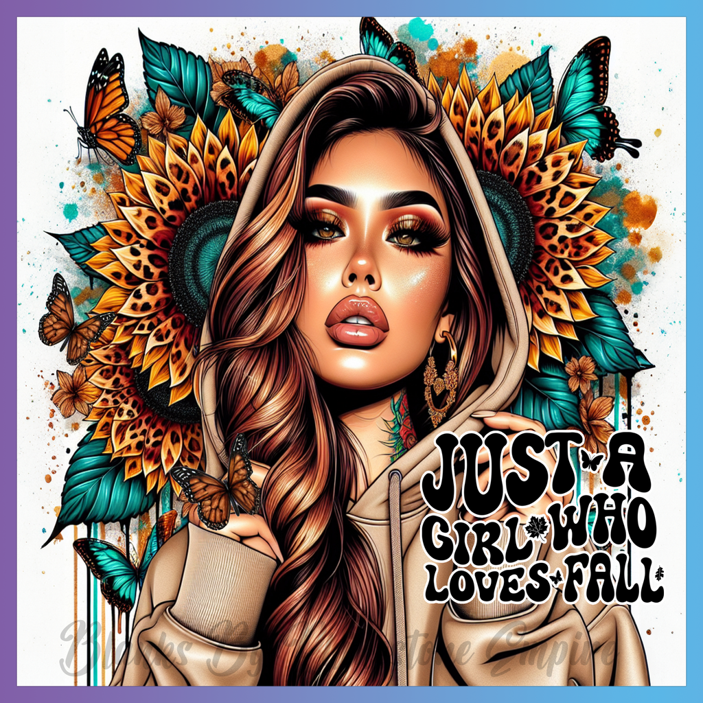 Theme: Girl with portrait, fall, butterflies, sunflowers.