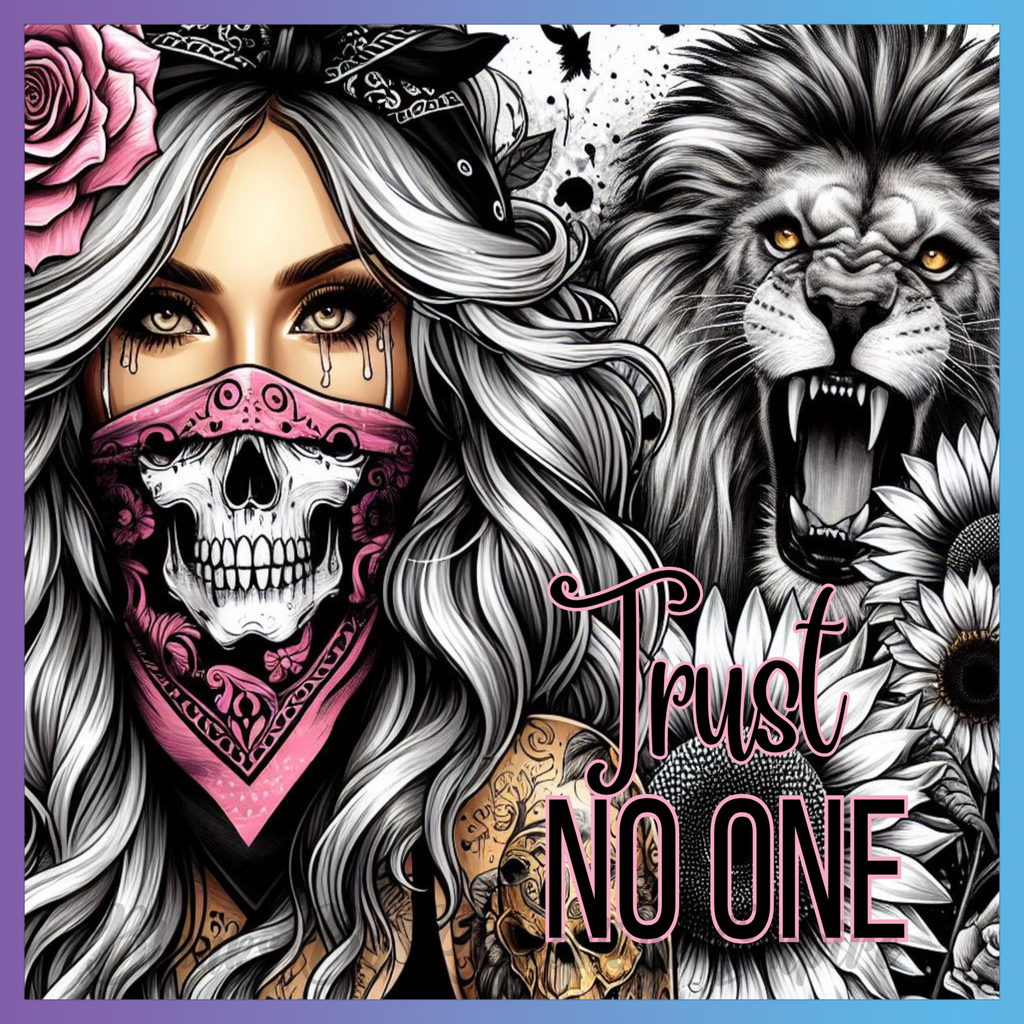 Theme: Girl with skull, lion, flowers, bandana.