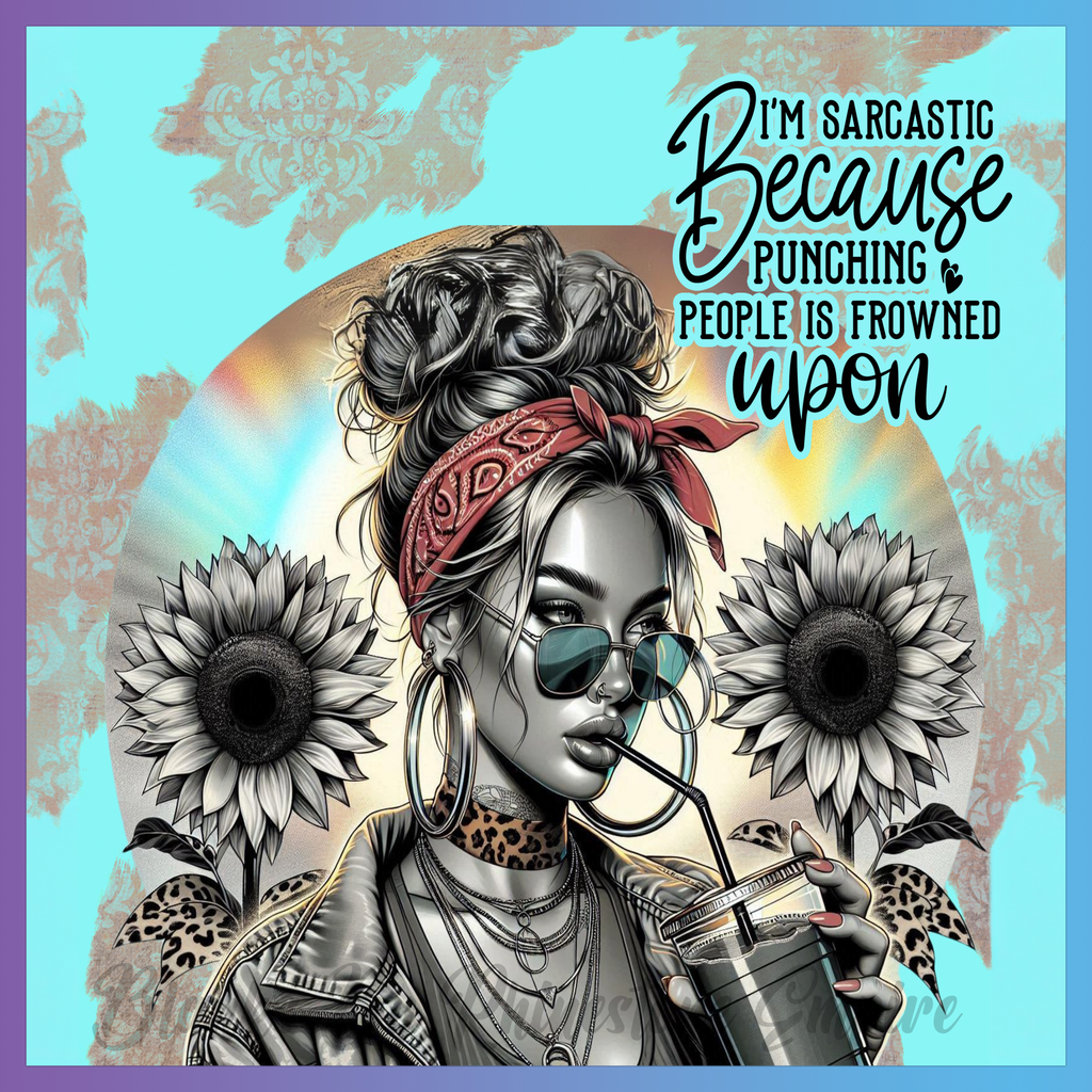 Theme: Girl with sarcastic, sunflowers, bandana, sunglasses.