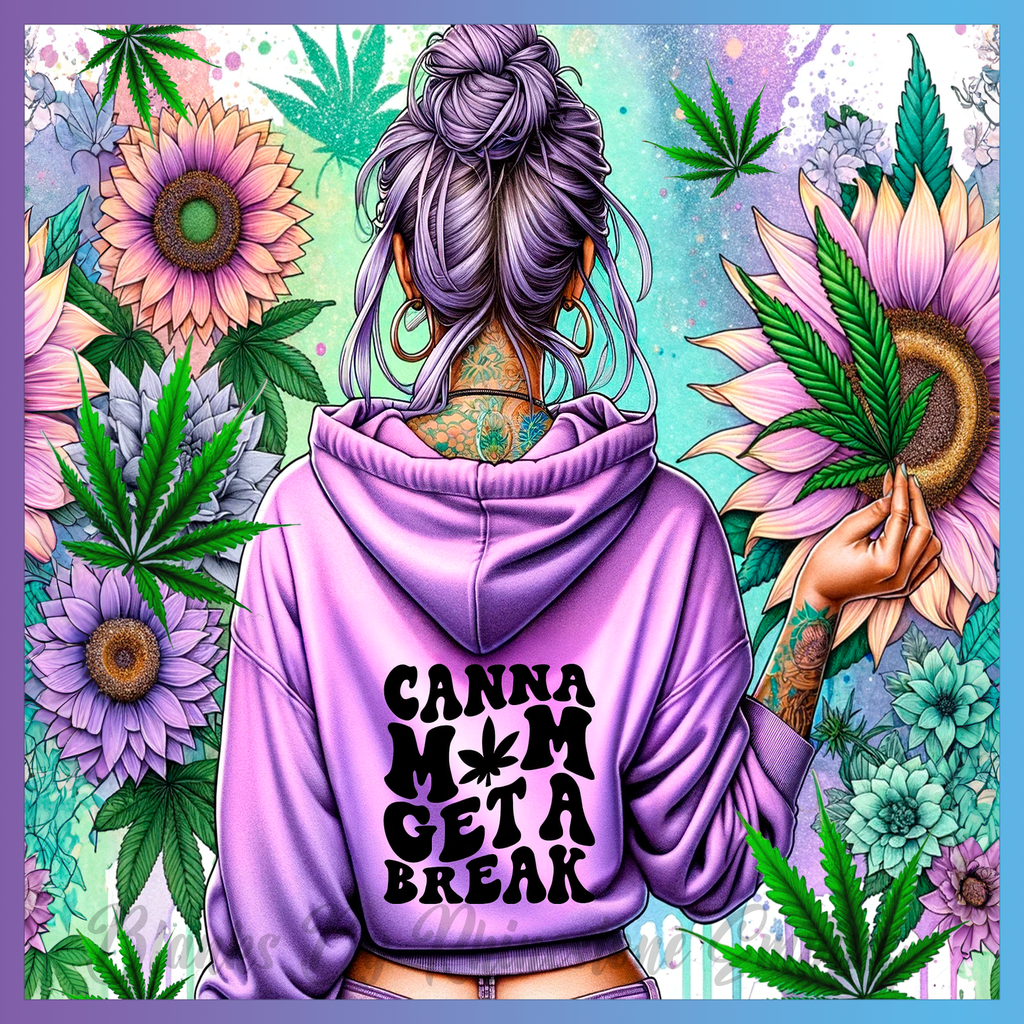Theme: Girl with tattoo, flowers, cannabis, hoodie.
