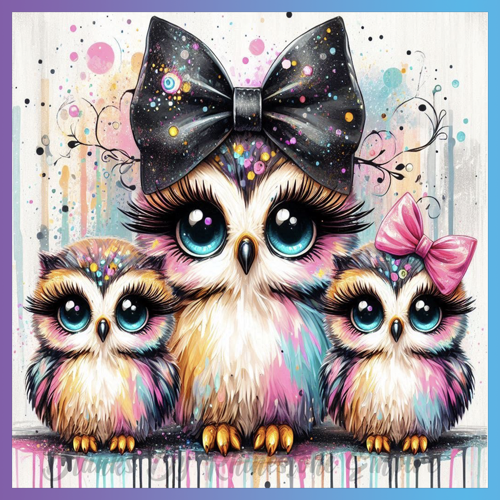 Theme: Owl with colorful, cute, bows, family.
