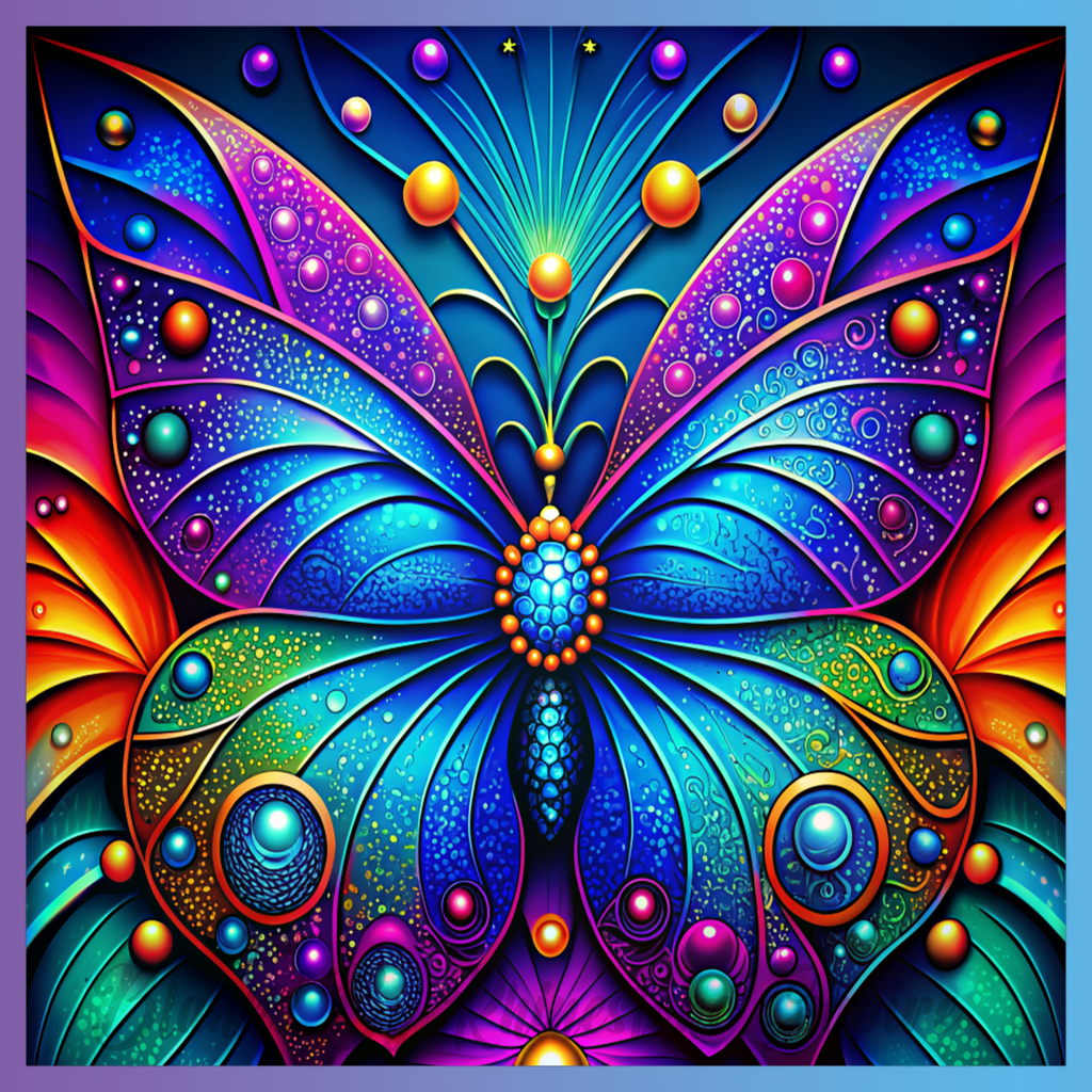 Theme: Butterfly with colorful, abstract, patterns, ornate.