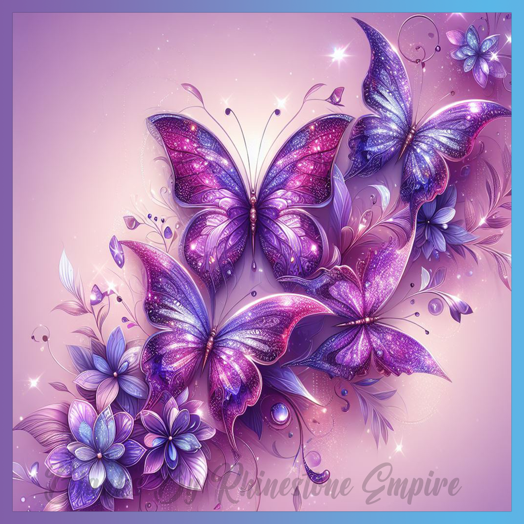 Theme: Butterfly with purple, flowers, glitter, ornate.