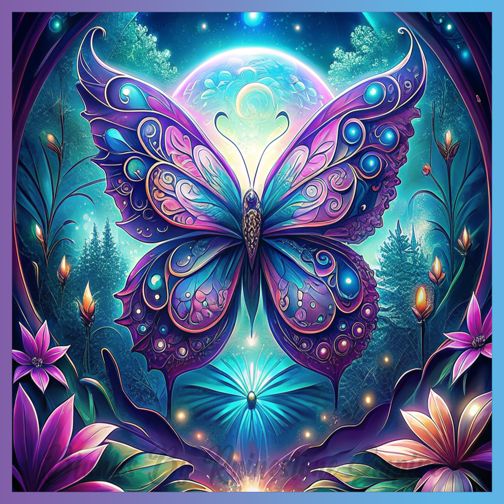 Theme: Butterfly with colorful, fantasy, nature, flowers.