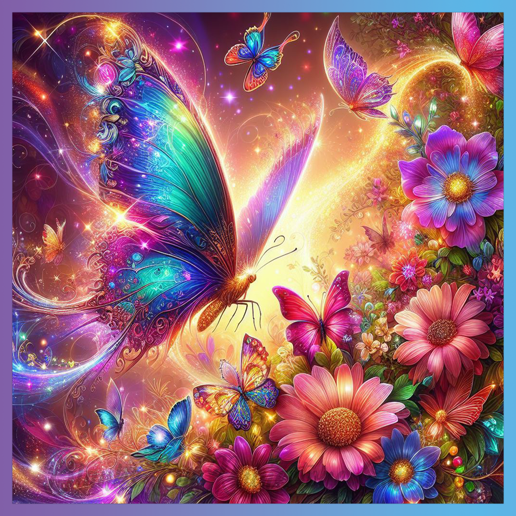 Theme: Butterfly with colorful, flowers, sparkles, fantasy.