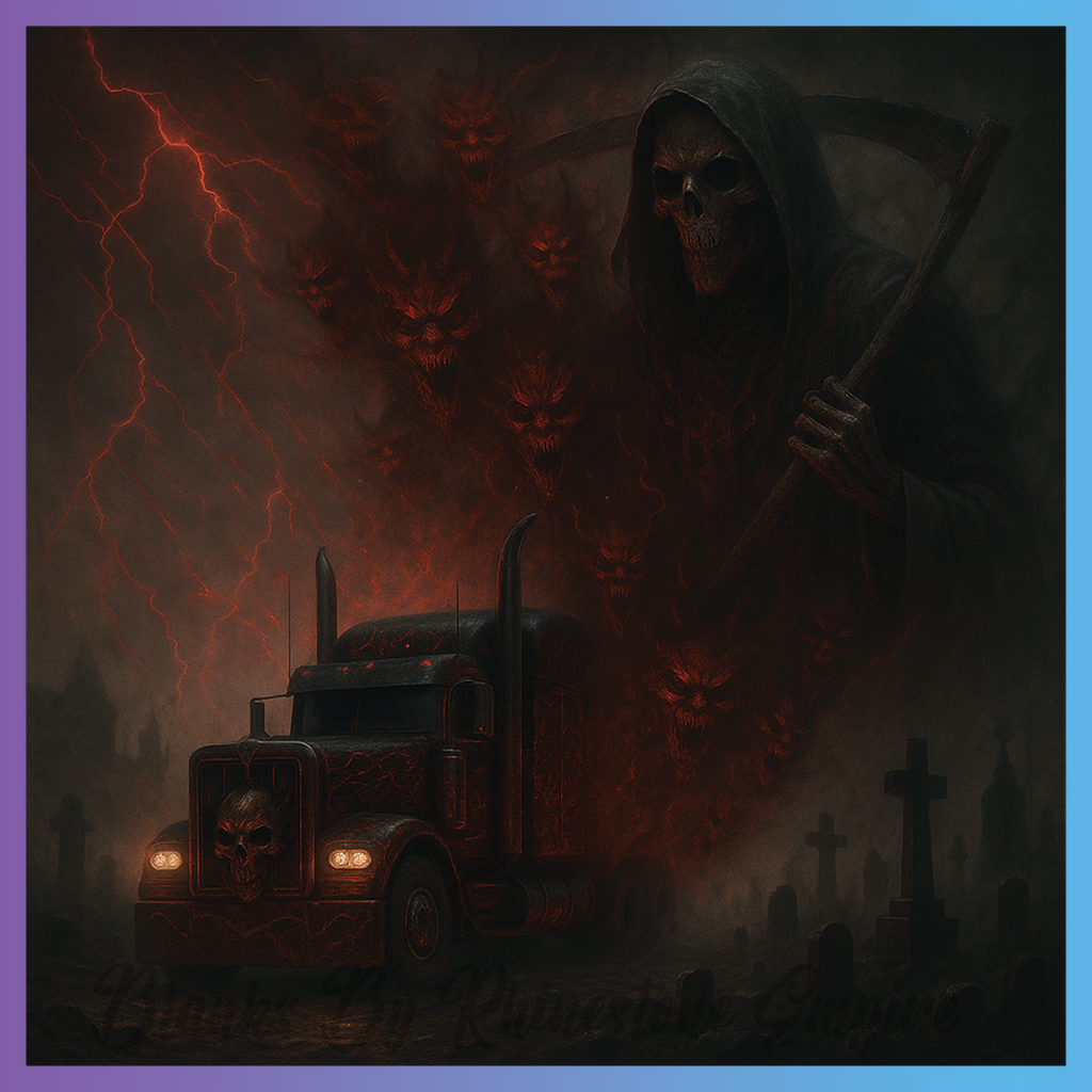 Theme: Truck with grim reaper, skull, dark, lightning.