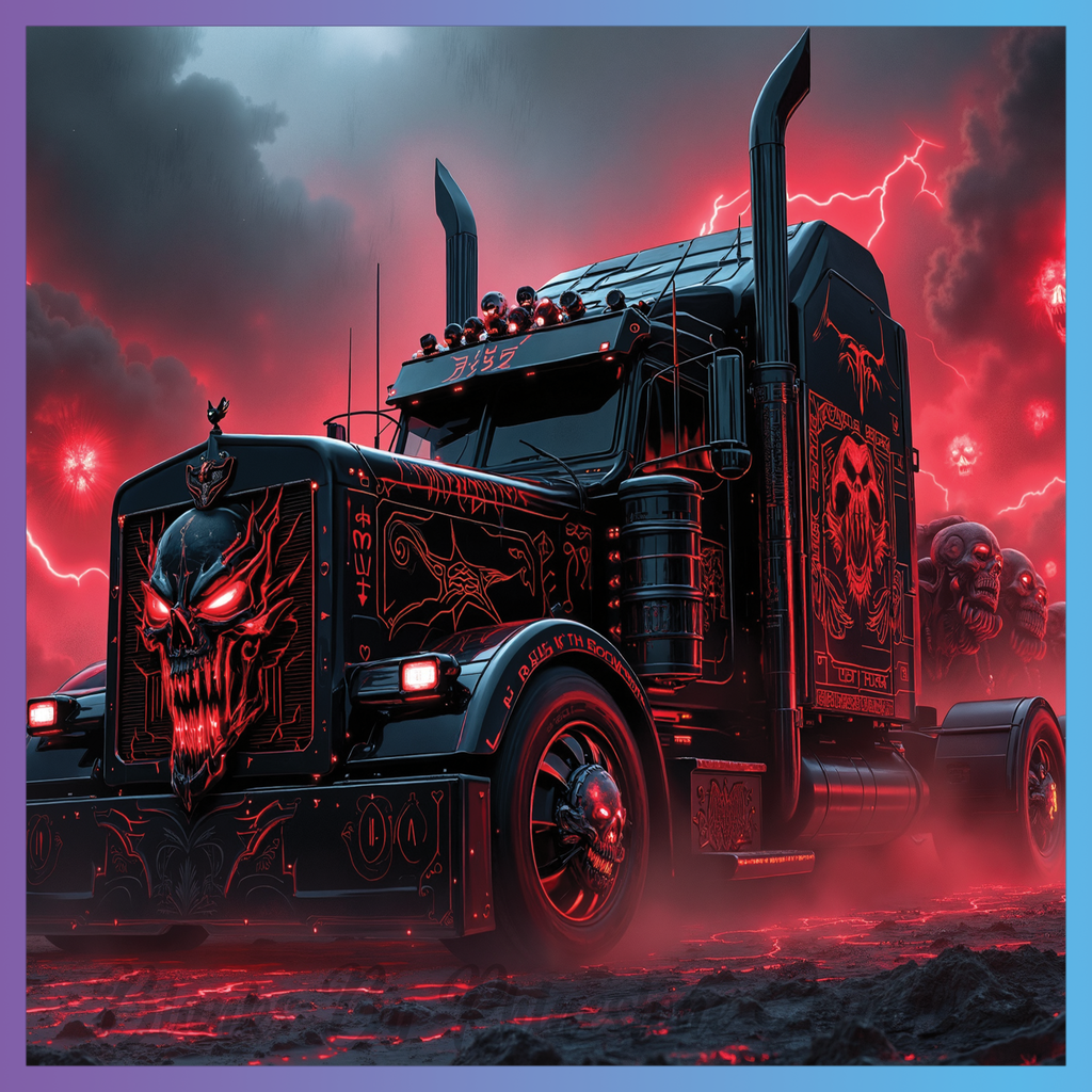 Theme: Truck with skull, red, dark, storm.