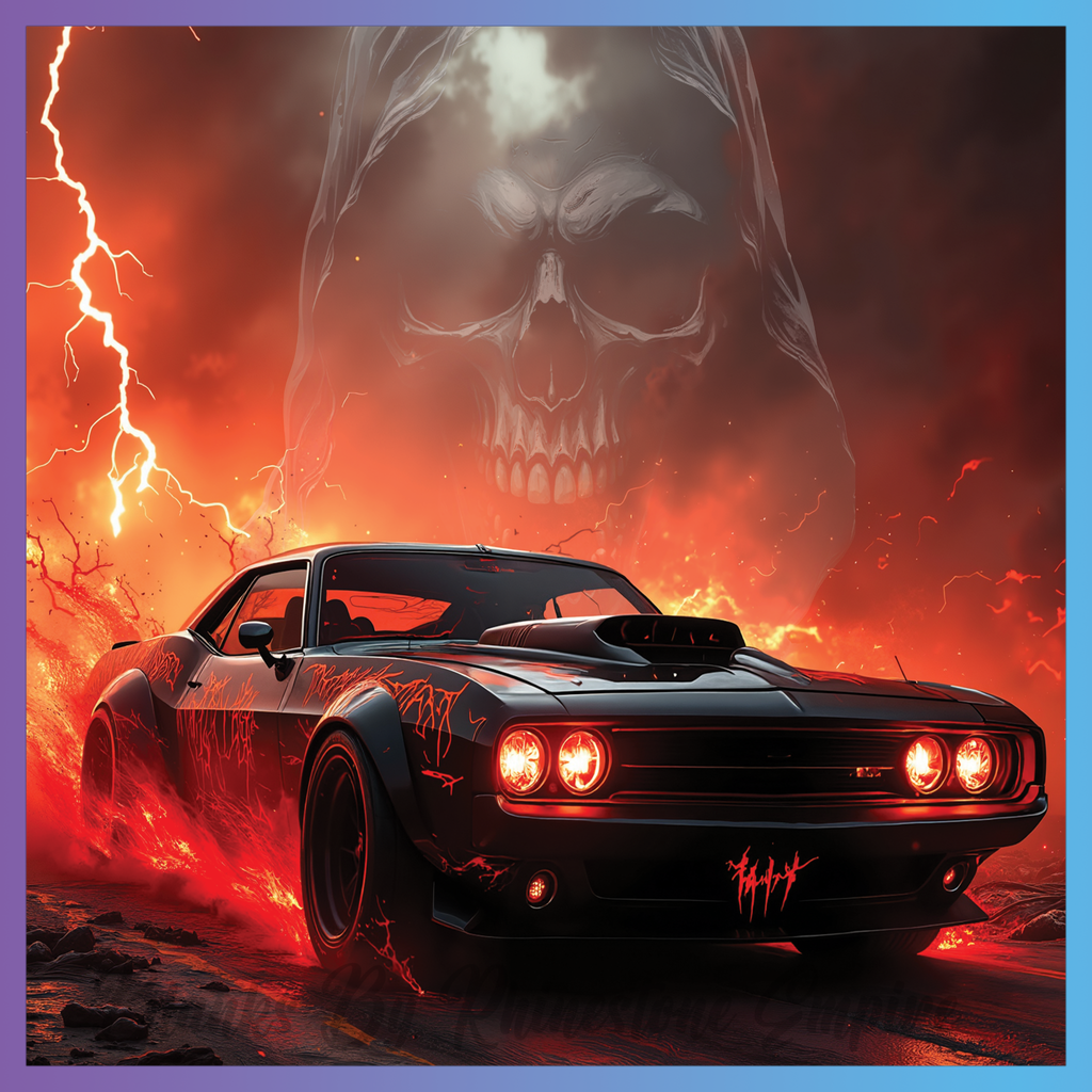 Theme: Car with skull, lightning, fire, dark.