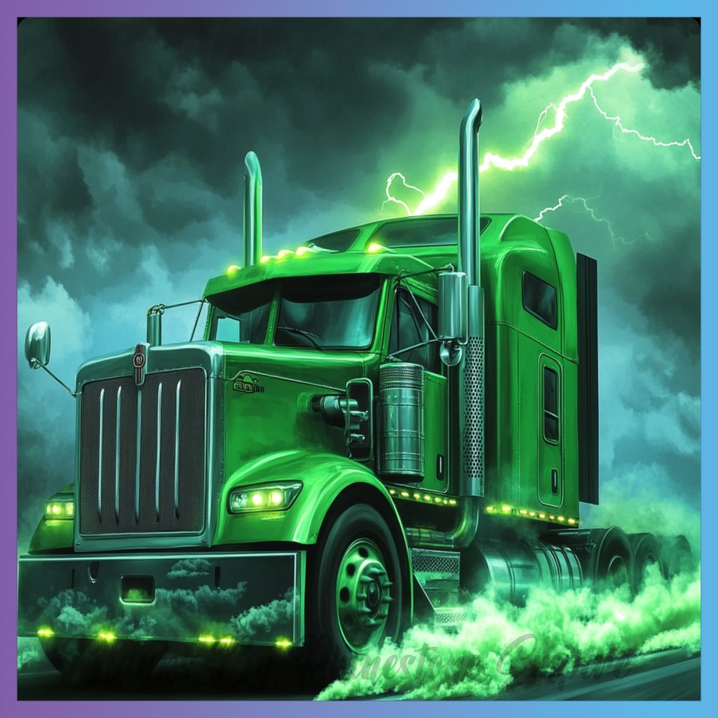 Theme: Truck with green, lightning, storm, smoke.