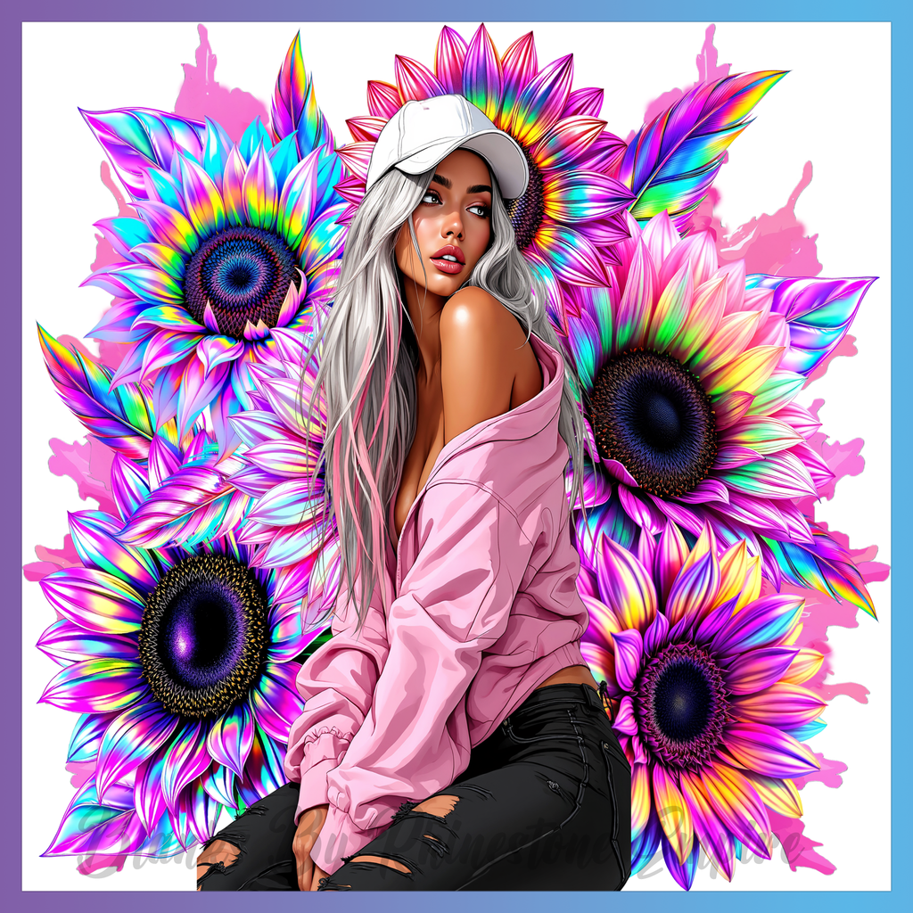 Theme: Girl with flowers, colorful, portrait, pink.