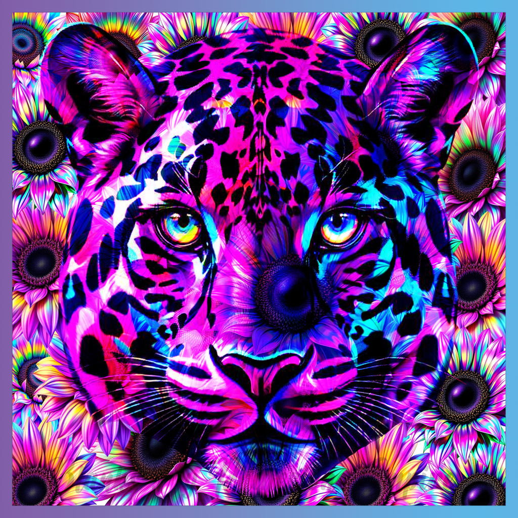 Theme: Tiger with colorful, vibrant, flowers, abstract.