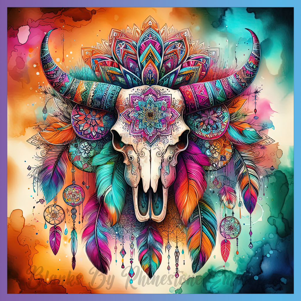 Theme: Skull with bohemian, colorful, feathers, dreamcatchers.