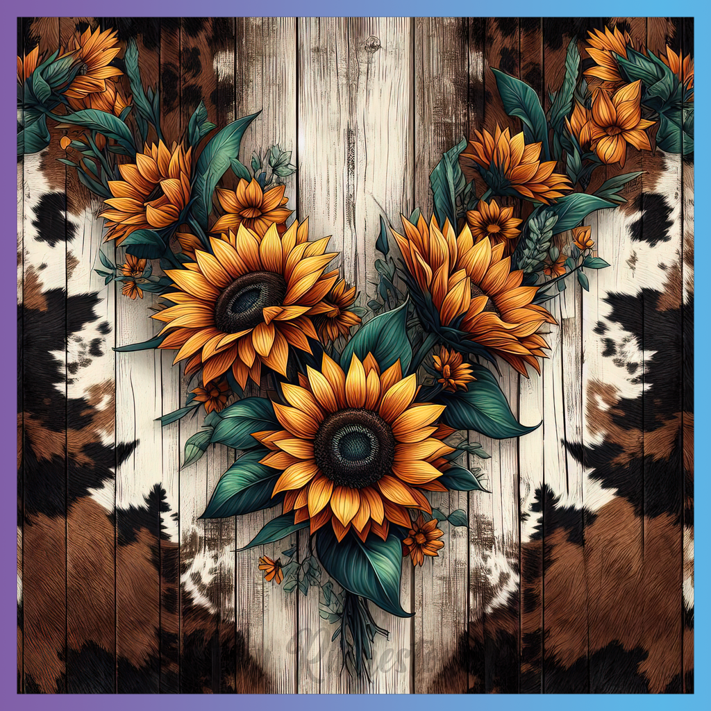 Theme: Sunflower with flowers, wood, pattern, orange.