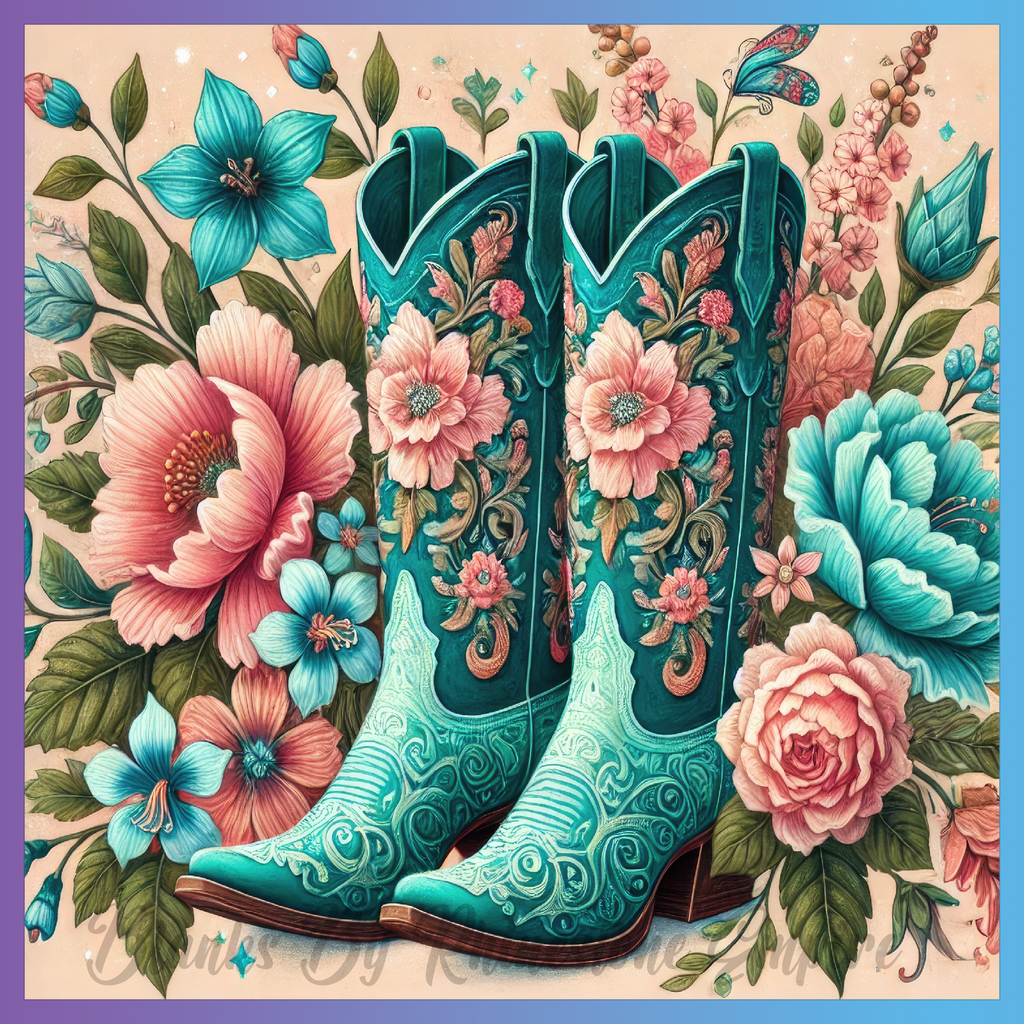 Theme: Boots with floral, turquoise, vintage, ornate.