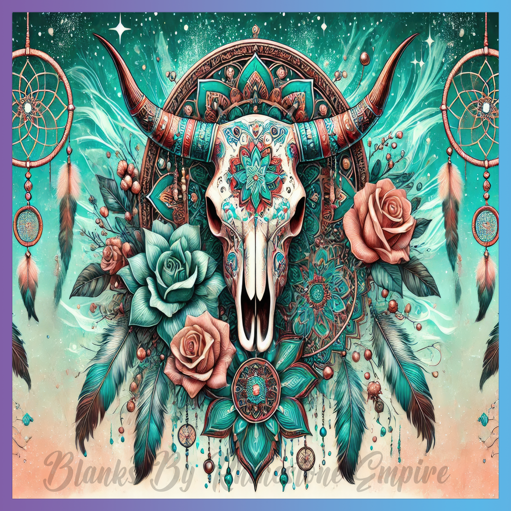 Theme: Skull with bohemian, flowers, dreamcatchers, feathers.