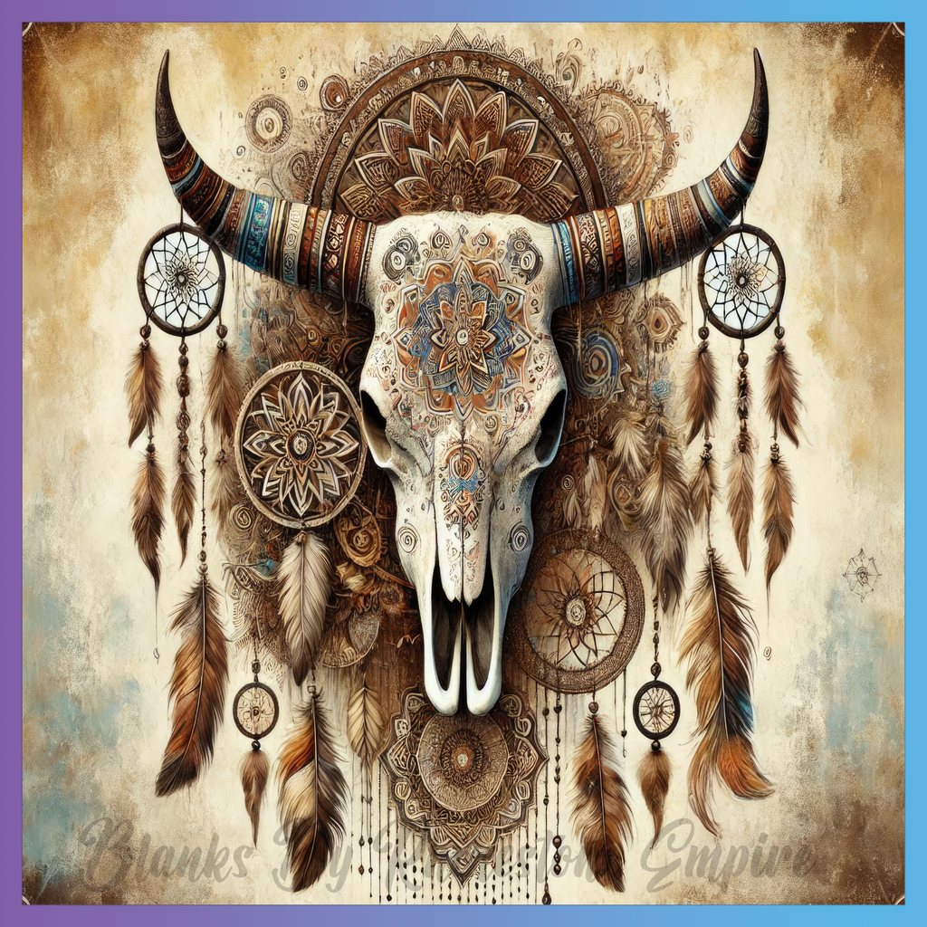 Theme: Skull with bohemian, feathers, dreamcatchers, mandala.