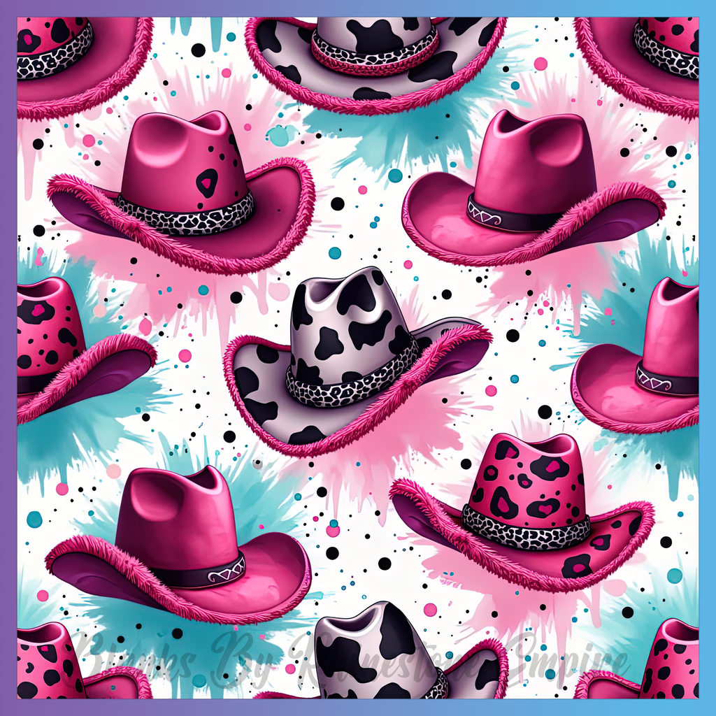 Theme: Hat with pink, cowboy, pattern, leopard.