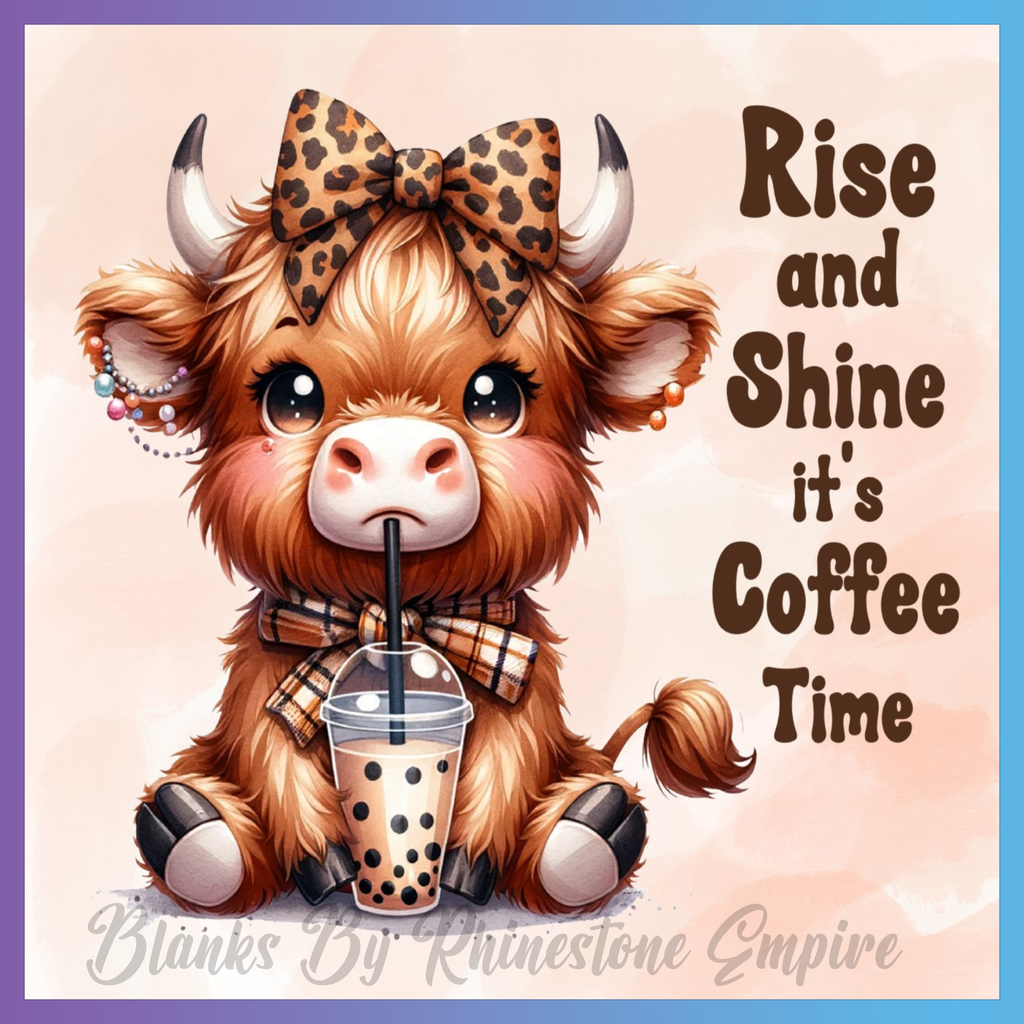 Theme: Cow with cute, coffee, bow, cartoon.
