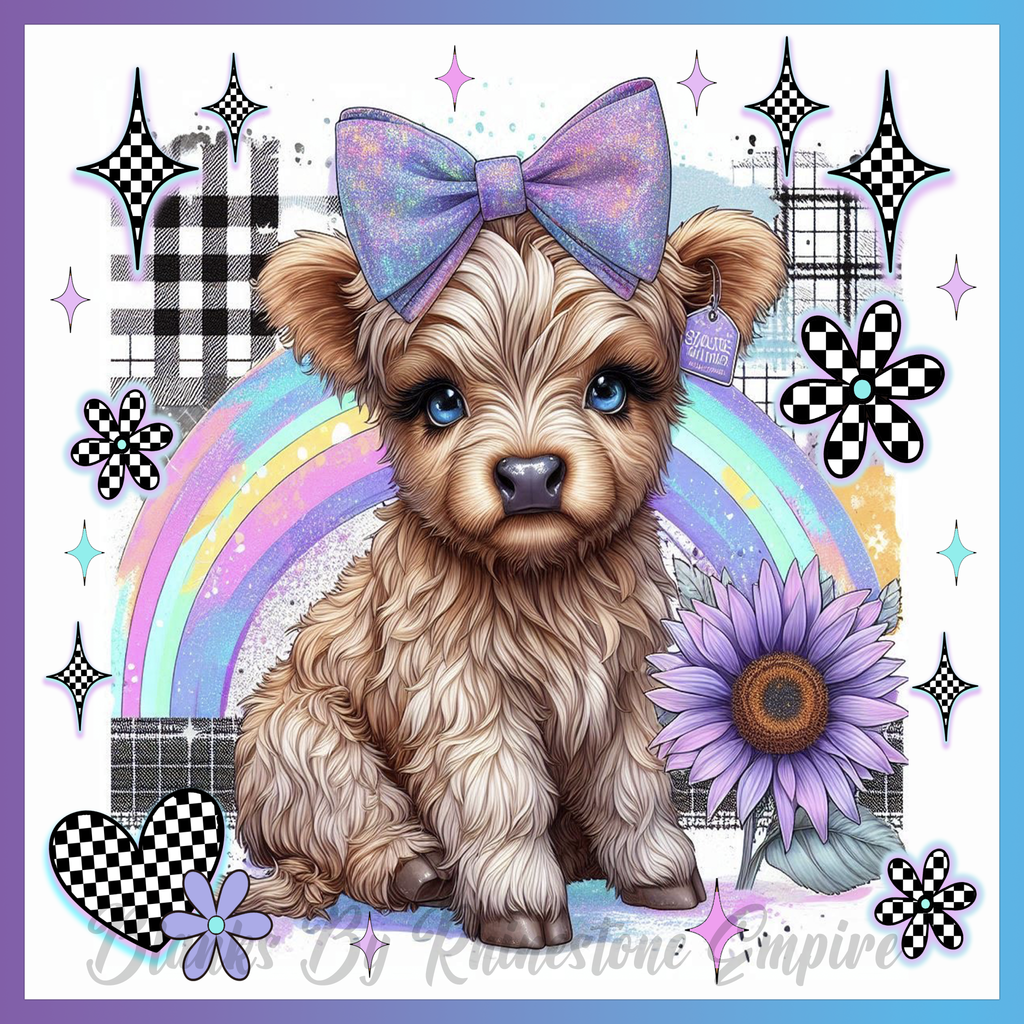 Theme: Puppy with bow, rainbow, flowers, checkered.