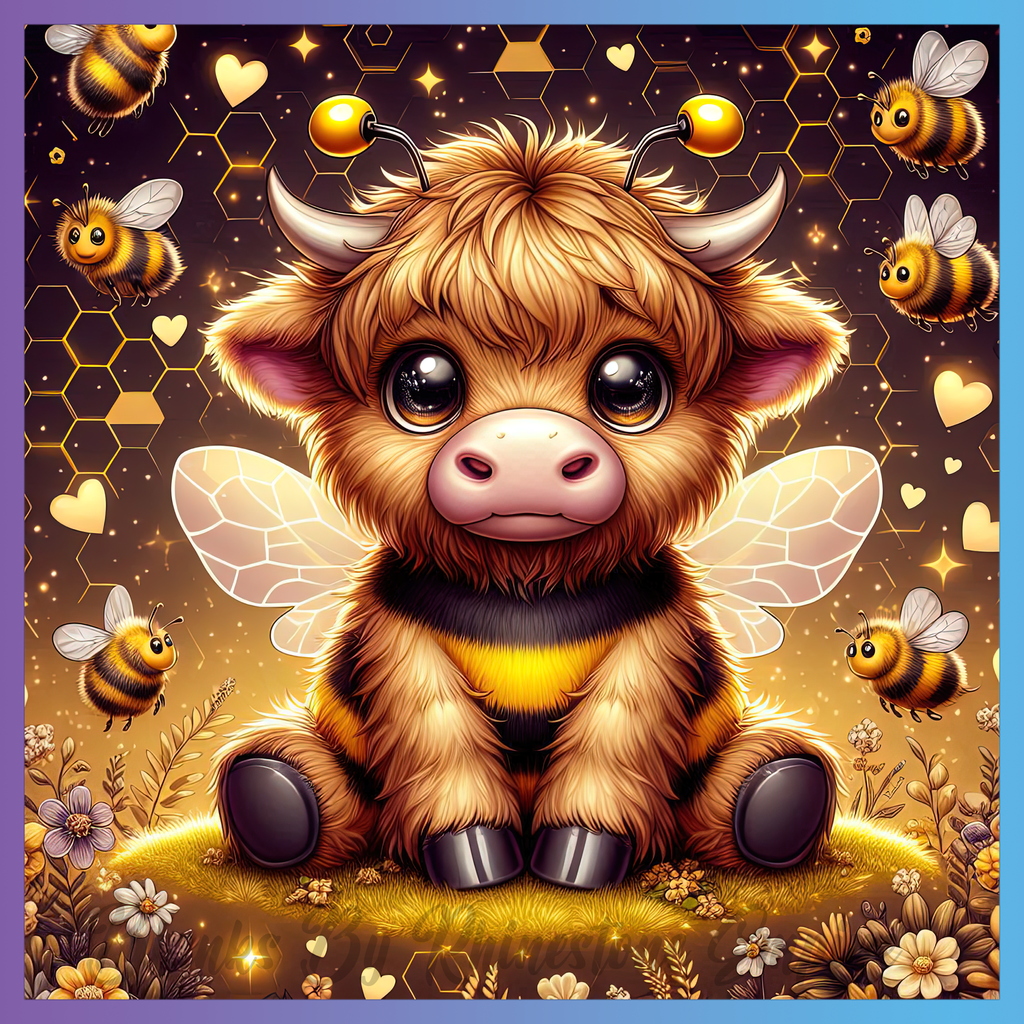 Theme: Cow with cute, bees, honeycomb, flowers.